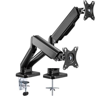 Stolní držák pro PC monitory. Masivní ocel, elegantní odlitek z hliníku s inovativní technologií vyvažování a kryty pro vedení kabelů. Nastavitelná ramena s plynovým pístem umožní pohyb nahoru, dolů, vpřed a vzad jen jedním dotykem. Funkce pivot. Nosnost max.: 2x 2 až 9 kg. VESA 75x75 a 100x100.