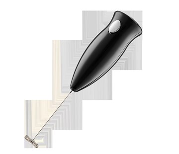 Ruční napěňovač pro přípravu bohaté mléčné pěny, k přípravě cappuccina, horké čokolády nebo čaje matcha. Ergonomický tvar, Měkká pogumovaná rukojeť typu Soft Touch, Šlehač (metla) z kvalitní nerezové oceli, Snadné čištění, Provoz na baterie 2x 1,5V AA, Rozměry 22,5 × 4,8 × 4,8 cm, Černý