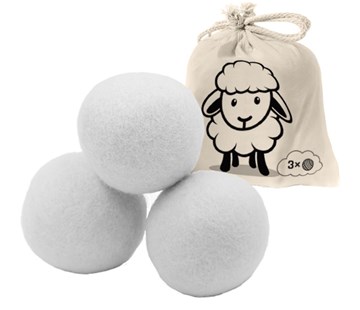 Vlněné koule do sušičky, 100% přírodní, vyrobené z ovčí vlny, vhodné jako míčky do sušičky prádla, snižuji hluk, zajistí úsporu energie, opakovaně použitelné, bezpečné pro lidi s citlivou pokožkou, v balení 3 kusy a praktický pytlík