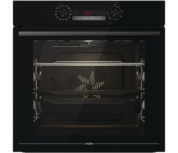 vestavná trouba • energetická třída A • objem 77 l • příkon 3500 W • 12 druhů ohřevu • zasouvací knoflíky pro nastavení teploty a způsobu ohřevu • program Pizza 300 °C • program pro horkovzdušné fritování bez tuku • program pro pomalé pečení • funkce gratinování • funkce ECO CLEAN pro ekologické čištění párou • displej • dotykové programovatelné hodiny • výsuvné teleskopické rošty (1 úroveň) • tlumené zavírání/otevírání dvířek • design: černé sklo • rozměry 59,5 × 59,5 × 56,4 cm