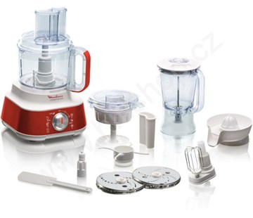 Kuchyňský robot Moulinex FP 653 GB7 je vybaven dvěma kovovými disky pro jemné a hrubé krouhání a krájení. Dále také kovovým sekacím nožem, plastovým hnětacím trnem, kovovou šlehací metlou, lisem na citrusy a odšťavňovačem. Součástí přístroje je pracovní mísa o obsahu 3 litry a mixér s obsahem 1,5 litru. Můžete si nastavit dvě rychlosti a pulse.