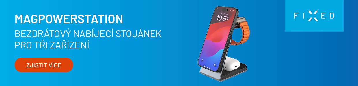 Stojánek s bezdrátovým nabíjením 3v1 FIXED MagPowerstation Alu 2 s podporou MagSafe, 15W+3.5W+2.5W, Qi2, titanový