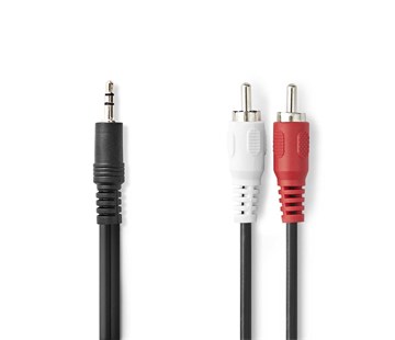 Audio kabel; kabel propojuje multimediální zařízení s 3,5mm jack zásuvkou, jako jsou chytré telefony a tablety, k výstupnímu zařízení, např. stereo systém, zesilovač nebo reproduktor; Jack 3,5 mm ; 2x RCA zástrčka; délka 1,5m.