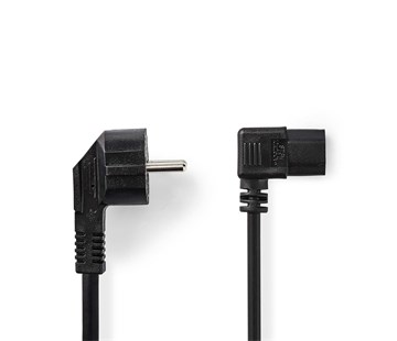 Napájecí kabel; univerzální napájecí kabel s úhlovou zástrčkou pro prostorově úspornou instalaci; kabel vhodný pro zařízení, jako jsou počítače, monitory, projektory atd; průměr vodiče 3 x 0.75 mm2; délka kabelu 2m.