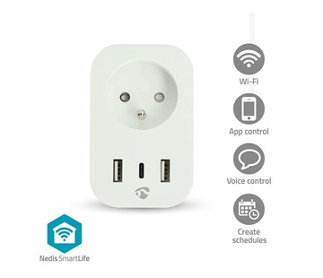 WI-Fi chytrá zásuvka; včetně jednoho portu USB-C a dvou portů USB-A pro nabíjení; USB porty podporují Power Delivery 20W a technologii Quick Charge; měří spotřebu energie v reálném čase; vhodné pro všechna zařízení do 3680 wattů, jako je spotřební elektronika, pračky, sušičky.