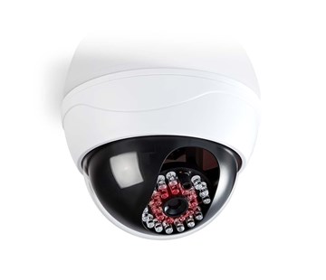 Atrapa venkovní kopulovité kamery pomáhá zastrašit narušitele. Má profesionální design, vyznačuje se vestavěnou infračervenou blikající LED a lze ji snadno namontovat pomocí dodané konzole.