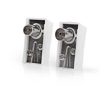 Úhlový; zástrčka/zásuvka; poniklované; 75 Ohm; šroub; průměr kabelu: 7.0 mm; kov/PVC; bílá; 2 ks