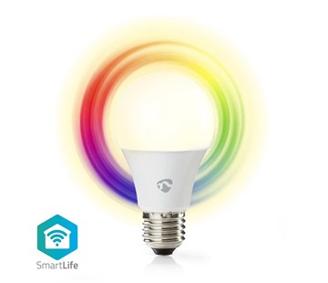 SmartLife žárovka LED RGB E27. Plnobarevná, 9W a 2700 - 6500 K. Plug & play: připojení přímo k síti Wi-Fi. Podporuje hlasové ovládání Amazon Alexa nebo Google Home a další automatizace prostřednictvím aplikace Nedis SmartLife