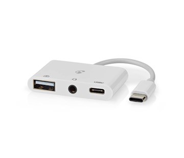 USB multiport adaptér; umožňuje kombinovat až tři různá zařízení přes jediný port; víceportový adaptér je vybaven porty USB-A a USB-C™ 2.0 s rychlostí přenosu dat 480 Mb/s a s 3,5mm portem pro výstup zvuku; maximální přenosová rychlost 480 Mbps.