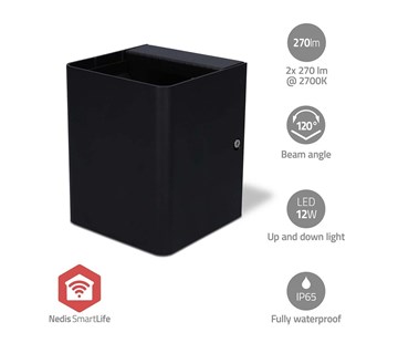 zigbee venkovní nástěnné LED světlo; ideální pro zahradu, terasu nebo balkon; pro použití v místech se slabším připojením k internetu; krytí IP65, barevná teplota 2700 K, barva světla: teplá bílá, RGB; stmívatelné pomocí aplikace; rozsah provozních teplot -20 - 40 °C; síťové napájení.