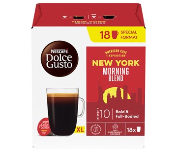 Probuďte se s odvážnou a plnou chutí NESCAFÉ® Dolce Gusto® New York Morning Blend. S intenzitou 10 poskytuje tato kávová směs bohaté aroma, výraznou chuť a hustou cremu. Tato ranní směs je pro milovníky kávy, kteří chtějí naplnit svůj den energií a inspirací.
