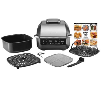 Fritéza s grilem Ninja EG351EU Foodi 5v1 představuje všestranného kuchyňského pomocníka, který kombinuje až pět různých funkcí v jednom spotřebiči. Díky nim zvládnete grilovat, fritovat, péct, opékat i sušit v jednom přístroji, což výrazně šetří místo i čas. Rozměry jsou přibližně 43×28×35,5 cm a spotřebič váží cca 8,3 kg, v elegantní černo-stříbrné kombinaci. Grilovací deska, varný hrnec a deska Crisper jsou opatřeny odolným keramickým povrchem, který je nepřilnavý a lze jej mýt v myčce nádobí. Součástí grilu je praktický čisticí kartáč s dlouhými štětinami. |