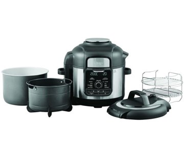 multifunkční hrnec • příkon 1760 W • 9 automatických programů • nastavitelná teplota • časovač • hlavní nádoba o objemu 7,5 l • nepřilnavý povrch hrnců • digitální displej • funkce Keep Warm • 80cm přívodní kabel • hmotnost 11,3 kg • příslušenství – 4,7l koš Cook&Crisp, dvoupatrový otočný rošt, tlaková poklice, poklice k dosažení křupavosti