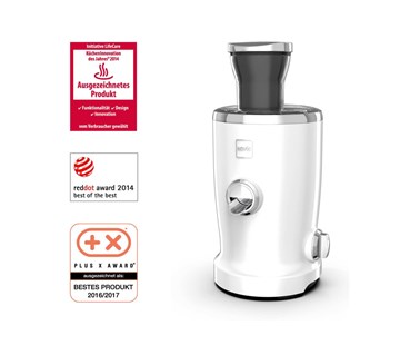 příkon max. 240W, extra široký plnící otvor, až 2000 ot/min, 4 funkce-odšťavňování, lisování, smoothie, Vitatec, o 12% více šťávy méně odpadu o 38% a zachová až o 56 % více vitamínů,patentovanou technologií je DropHold, která zabraňuje vytékání a odkapávání šťávy z přístroje