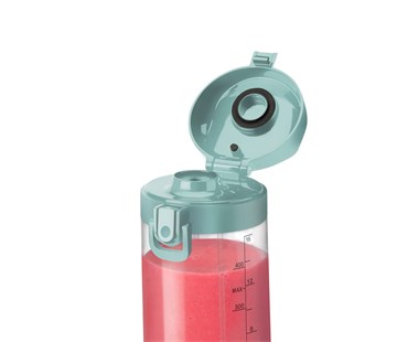 Připravte si své nápoje přímo ve 475ml nádobě tritanu bez obsahu BPA. Díky víčku s otvorem na pití si snadno vychutnáte vaše oblíbené čerstvě umixované nápoje kdekoliv na cestách.