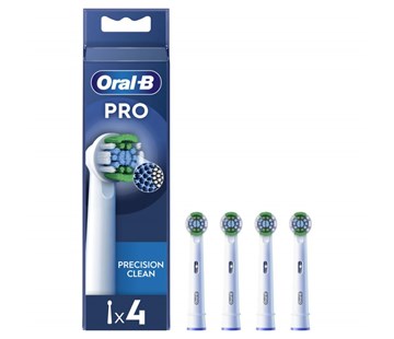 Kartáčková hlava Oral-B Pro Precision Clean odstraňuje zubní plak, a umožňuje tak v porovnání s běžným manuálním zubním kartáčkem špičkové čištění jednoho zubu po druhém. Originální kartáčkové hlavy Oral-B jsou navrženy s novými vlákny ve tvaru X, která čistí v místech, kam kulaté hlavy nedosáhnou. Ukazatel opotřebení kartáčkové hlavy změní vlákna ze zelené barvy na žlutou a ukazuje tak, kdy je hlavu nutné vyměnit pro 100% účinnost čištění. Zaručená kompatibilita se všemi dobíjecími zubními kartáčky Oral-B, s výjimkou zubních kartáčků Pulsonic a iO. 4 ks hlavic v balení.