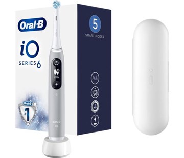 | Pro čištění můžete zvolit jeden z 5 režimů. Režim Daily Clean je speciálně navržen pro každodenní péči o ústní dutinu. Režimy Sensitive a Gum Care pak zajisté oceníte v případě, že vás trápí citlivá zubní sklovina a dásně. S režimem Intense Clean zajistíte svým zubům důkladnější péči. Toužíte po bělejších zubech? Vyzkoušejte režim Whitening. Spolu s elektrickým zubním kartáčkem Oral-B iO6 Series Grey Opal získáte také kartáčkovou hlavici Ultimate Clean a praktické cestovní pouzdro. |  |