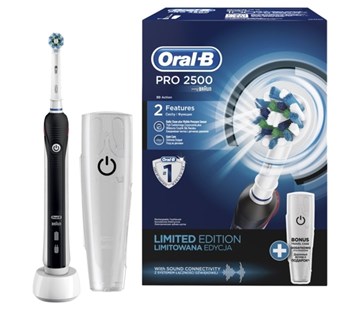 Toužíte po dokonalých zubech bez poskvrny? Důležitá je především péče o chrup, se kterou vám pomůže ORAL-B Pro 2500 Black. Péči o ústní dutinu v podobě precizního vyčištění téměř bez jakékoliv práce vám zajistí elektrický zubní kartáček ORAL-B. Tento pomocník se chlubí hned několika funkcemi, díky kterým bude čištění zubů mnohem efektivnější.