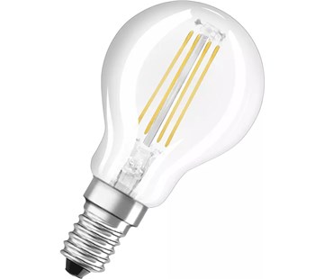 LED žárovka, výkon 4 W a svítí teplým bílým světlem o teplotě 2700 K. Pro domácí použití s průměrnou životností 10 000 hodin. Plně nahradí běžnou žárovku o výkonu 40W s nižší spotřebou el. energie. Provedení klasická baňka, čirá, patice E14, jmenovité napětí 220 – 240 V, Filamentové provedení.