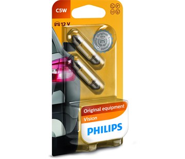 C5W Festoon žárovka Vision, napětí 12 V, příkon 5 W, životnost 875 h, 45 lumenů, homologace ECE, patice SW8,5, 2 ks v blistru