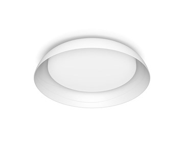 Stropní bílé LED svítidlo Philips FLETA z kolekce úsporného UltraEfficient osvětlení s technologií Scene Switch o velikosti 35 cm a celkovém příkonu 10 W, jehož teplý žlutý svit s teplotou chromatičnosti 2700 K můžete krokově stmívat ve třech úrovních pomocí standardního nástěnného vypínače.