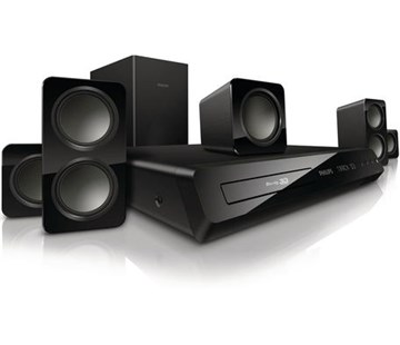 PHILIPS HTB3560/12 - Domácí kino 5.1 s 3D Blu-ray. Zvukový systém: Dolby Digital 5.1, Dolby Digital Plus, Dolby True HD, Dekodér DTS Digital Surround, dts ES, DTS-HD High Resolution Audio, DTS-HD Master Audio Essential. Celkový výkon RMS při 30% celkovém harmonickém zkreslení (THD): 300 W, Přehrávatelné disky: AVCHD, BD, BD R / BD RE, CD, CDDA, CD-R/CD-RW, DVD, DVD +R/+RW, DVD R/?RW, Standard SVCD, Disk VCD, Přehrávání zvuku: AAC, MP3, WAV, WMA, Přenosová rychlost formátu MP3: 32–320 kb/s, Přehrávání videa, DivX Plus HD, MPEG1, MPEG2, MPEG4, Zobrazení fotografií: GIF, JPEG, JPEG HD, Progresivní JPEG, PNG, Vylepšení obrazu: HD (720p, 1080i, 1080p/24 snímků za sekundu), Progressive scan, Zvýšení rozlišení videa, FM tuner, 40 předvoleb, Možnosti připojení: Music iLink, USB, Vstup AUX, Konektory reproduktoru Click-fit, Výstup kompozitního videa (CVBS), Dig. vstup pro opt. kabel, Ethernet, Zásuvka pro anténu FM, Výstup HDMI 1.4 (ARC). Dodávané příslušenství: 2x baterie AAA, Anténa FM, Napájecí kabel, Stručný návod k rychlému použití, Dálkový ovladač. Hlavní jednotka (Š x V x H): 360 x 58 x 325 mm. Hmotnost hlavní jednotky: 2,40 kg.