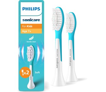 2x dětská náhradní hlavice pro zubní kartáček Philips Sonicare for Kids, pro děti od 7 let, zvýšená ochrana skloviny a jemných dásní, sonický stíravý pohyb