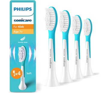 4x dětská náhradní hlavice pro zubní kartáček Philips Sonicare for Kids, pro děti od 7 let, zvýšená ochrana skloviny a jemných dásní, sonický stíravý pohyb,
