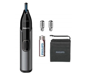 zastřihovač chloupků • 2 hřebeny na obočí • systém Protective Guard • nerezové ocelové břity • plně omnyvatelný • napájení 1× AA baterie • součástí balení cestovní pouzdro