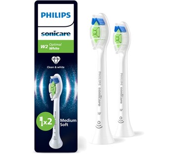 2x Náhradní hlavice Optimal White pro zubní kartáček Philips Sonicare, bělejší zuby, hloubkové čištění, sonický stíravý pohyb, párování režimů BrushSync, kompatibilní s modely Philips Sonicare