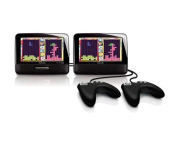 DVD přehrávač Philips PD7032/12 je ideální společník na dlouhé cesty automobilem. Výhodou je dvojice širokoúhlých LCD displejů o velikosti 7", na kterých nejenže budete moci sledovat vaše oblíbené filmy, ale také hrát hry. S přehrávačem obdržíte herní CD, které stačí vložit do diskové mechaniky a vybrat si z řady her.