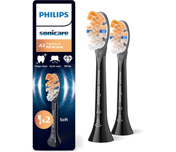 2x Náhradní hlavice All-in-One pro zubní kartáček Philips Sonicare, unikátní technologie univerzální hlavice pro celkovou péči. Profesionální péče pro bělejší zuby, zdravější dásně a odstranění zubního plaku a každodenních povrchových skvrn. Sonický stíravý pohyb, párování režimů BrushSync, kompatibilní s modely Philips Sonicare, barva černá