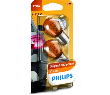 PY21W žárovka Vision, napětí 12 V, příkon 21 W, životnost 500 h, 280 lumenů, homologace ECE, patice BAU15s, 2 ks v blistru