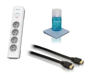 TV set obsahuje přepěťovou ochranu SPN7040WA/60, HDMI cabel SWV5401H/10 a čistič obrazovky SVC1116B/10