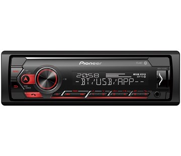 4x50W MOSFET, Bluetooth, USB, AUX, přehrává WMA/MP3/WAV/AAC/FLAC, 2x RCA, Pioneer Smart Sync, kompatibilní s iPhone a s Android, Spotify, KARAOKE, 13pásmový ekvalizér, LPF/HPF, připojení 2 telefonů, červené prosvětlení tlačítek