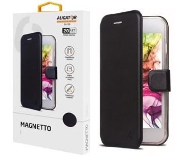 Pouz.ALIGATOR Magnetto Sam A02s, Black - Dokonale propracovaný design, ultratenké provedení, přihrádka na kartu nebo vizitky, zavírání pomocí magnetické přezky, snadné uchycení mobilního telefonu pomocí silikonové vaničky, stojánek… To je ALIGATOR MAGNETTO.
