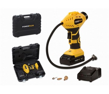 AKU kompresor 18V LI-ION. , Kapacita akumulátoru - 1.500 mAh Li-ion, Napětí - 18 V, Maximální tlak - 8bar, Průtok vzduchu (kapacita) - 35 l/min, Doba nabíjení baterie - 1 hod., Hmotnost - 1,1 kg