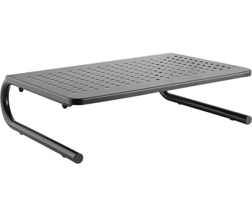 Podstavec pod monitor/notebook; Vhodná velikost obrazovky: 13" ~ 32"; Nosnost: 20 kg; Materiál: plast, ocel; Cirkulace vzduchu - perforovaný povrch; Úložný prostor pod pracovní plochou; Protiskluzové podložky; Pevná konstrukce; Elegantní a stylový podstavec s nohami ve tvaru písmene U