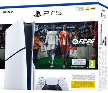 herní konzole • 8jádrový procesor AMD Zen 2 • grafický čip RDNA 2 • Ray Tracing • SSD 1 TB • Blu-ray mechanika • podpora 4K rozlišení (při 120 fps) a technologie HDR • Tempest 3D AudioTech • bezdrátový ovladač DualSense s adaptivními spouštěmi, haptickou odezvou a integrovaným mikrofonem • zpětná kompatibilita s hrami pro PS4 • možnost integrace soupravy PlayStation VR • hra EA Sports FC 26 (fotbalový simulátor)