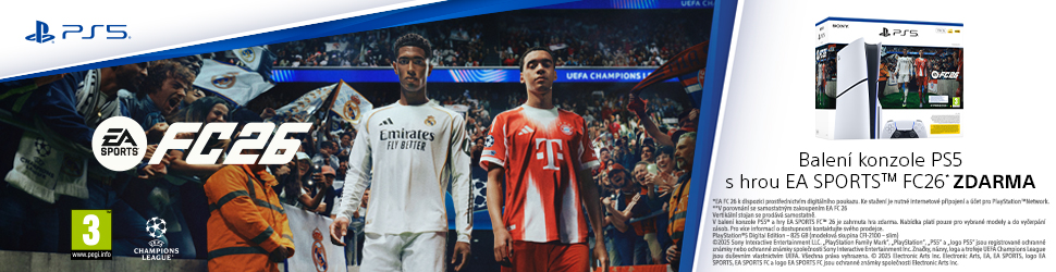 Přivítejte ve svém životě Sony PlayStation 5 – vyspělou herní konzoli, která vám přinese hodiny a hodiny skvělé zábavy. Bojujte s monstry v brutálních akčních střílečkách. Vžijte se do role hvězd sportovního nebe a zažijte jejich slávu i zklamání. Anebo vezměte do vlastních rukou osud celého lidstva a budujte nové civilizace a úžasné fantazijní světy. Ať už je zkrátka vaším oblíbeným žánrem cokoliv, s PS5 se můžete do hraní opřít jako nikdy předtím. Těšit se můžete na zbrusu nové hry, které jsou speciálně vyvinuty pro PlayStation 5, ale i na zpětnou kompatibilitu s herními hity pro konzoli PS4. V každém případě se však dočkáte super rychlého načítání disku SSD, skvělé haptické odezvy či jedinečného 3D zvuku. V této verzi (PS5 Digital Edition) je herní konzole Sony PlayStation 5 dodávána bez optické mechaniky. Jedná se tedy o plně digitální verzi konzole, k níž si nové hry kupujete formou stažení z obchodu PlayStation Store. Součástí této limitované edice je přitom rovnou i hra EA Sports FC 26. |