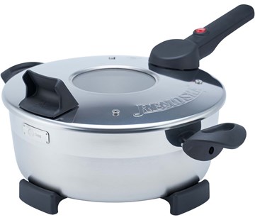 |  | Unikátní povrch Trimetal tvoří dvě vrstvy nerezové oceli a vnitřní hliníková vrstva, která přispívá k lepší vodivosti. Pečicí hrnec o celkovém objemu 4 litry poskytuje dostatek místa až pro 6 porcí jídla. Hravě tedy pohostíte celou rodinu. Hrnec se hodí pro použití na všech typech sporáků, a to včetně indukce. Samozřejmě je možné využít také pečicí víko a spotřebič zapojit do nejbližší elektrické zásuvky. |