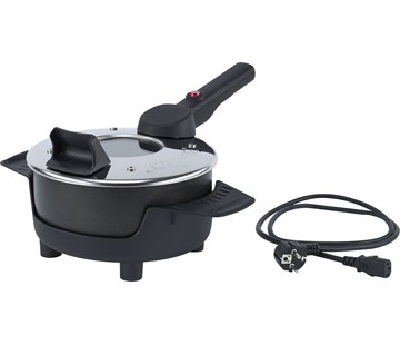 Remoska pracuje s příkonem 400 W, umožňuje pečení při teplotách 160–180 °C a její objem činí dostatečné 2 litry. Praktické je na ní i skleněné okénko, jehož prostřednictvím můžete připravovaný pokrm uvnitř kdykoliv jednoduše zkontrolovat. Také na ní jistě oceníte kompaktní design a odnímatelný přívodní kabel (o délce 1,25 m), který usnadňuje skladovatelnost spotřebiče. A skvělý je zde i servírovací stojan, který vám usnadní podávání hotového jídla na stůl. Mísa je také opatřena nepřilnavým povrchem Teflon Classic. |