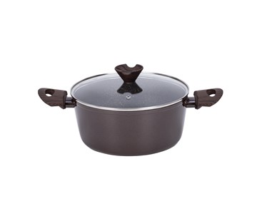 vnitřní nepřilnavý mramorovaný povlak PFLUON, ergonomické dřevěné rukojeti Soft Touch, vyztužené dno, vhodné pro všechny typy sporáků včetně indukce, materiál kovaný hliník, průměr 24 cm, objem 4,7 l, výška 10,5 cm