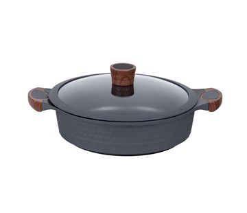 vnitřní nepřilnavý povlak PFLUON, ergonomická dřevěná rukojeť Soft Touch s poutkem na zavěšení, skleněná poklice s otvorem pro páru, dno pánve je vyztuženo diskem proti deformaci, vhodné pro všechny typy sporáků včetně indukčních, materiál hliníková litina, průměr 28 cm, výška 8 cm, objem 5 l