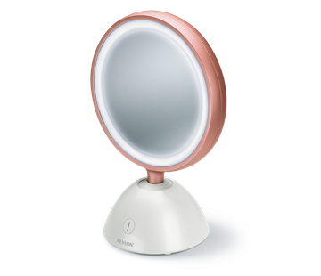 Kosmetické zrcátko s LED osvětlením • 2 strany: reálný odraz / 5× zvětšený • nabíjení přes USB • výdrž až 8 h • nastavitelný sklon • průměr 17,5 cm