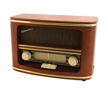analogové rádio AM/FM, vestavěný širokopásmový reproduktor, podsvícená stupnice stanic, výkon 12W PMPO, 1x 1,5 W RMS, napájení ze sítě 230V nebo na baterie 6x LR14