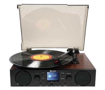 |  | Řemínkový pohon spolu s elektromagnetickou přenoskou zajistí plynulé přehrávání vinylových desek. Při poslechu máte na výběr ze 3 rychlostí přehrávání. Konkrétně je možné zvolit rychlost 33, 45, nebo 78 otáček za minutu. Zároveň ale můžete využít i široké možnosti digitálního poslechu. Díky integrované technologii Bluetooth snadno připojíte svá zařízení bezdrátově a užijete si oblíbenou hudbu z mobilního telefonu či tabletu. Případně lze vložit microSD kartu či USB flash disk nebo vyzkoušet možnost přímého kódování do MP3. Gramofon disponuje také DAB+ a FM rádiem. |