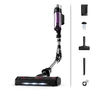 bezdrátový tyčový vysavač • 18V Li-Ion baterie • objem prachové nádoby 0,4 l • doba nabíjení 4 h • výdrž na jedno nabití až 45 min • hlučnost 83 dB • odnímatelný ruční vysavač • vysoce účinná filtrace vhodná pro alergiky • LED osvětlení vysávaného prostoru • 3 rychlosti • integrovaný kartáček Easy Brush • příslušenství – filtr, štěrbinová hubice, hubice na čalounění, flexibilní provedení • hmotnost 2 kg