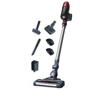 tyčový vysavač • 18V Li-Ion baterie • objem prachové nádoby 0,6 l • doba nabíjení 4 h • výdrž na jedno nabití až 45 min • omyvatelný filtr • odnímatelný ruční vysavač • sada pro úklid zvířecích chlupů • hlavice s motorizovaným kartáčem a LED osvětlením • příslušenství: hubice na čalounění a štěrbinová hubice • hmotnost 2,4 kg