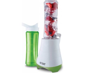 Praktický mixér Russell Hobbs 21350-56 oceníte. ať už se držíte zásad zdravé výživy, či rádi mlsáte. Stane se pro vás neodmyslitelným pomocníkem při přípravě nejrůznějších koktejlů, ovocných šťáv, či jogurtu s ovocem. Navíc obsahuje 2 láhve s praktickými uzávěry, které vám umožní zpracované ingredience ihned vychladit v ledničce, či dát dětem do školy. Uzávěry jsou opatřeny otvorem na pití, tak ani nehrozí, že by s nimi musely děti více manipulovat. Můžete je umýt v myčce.